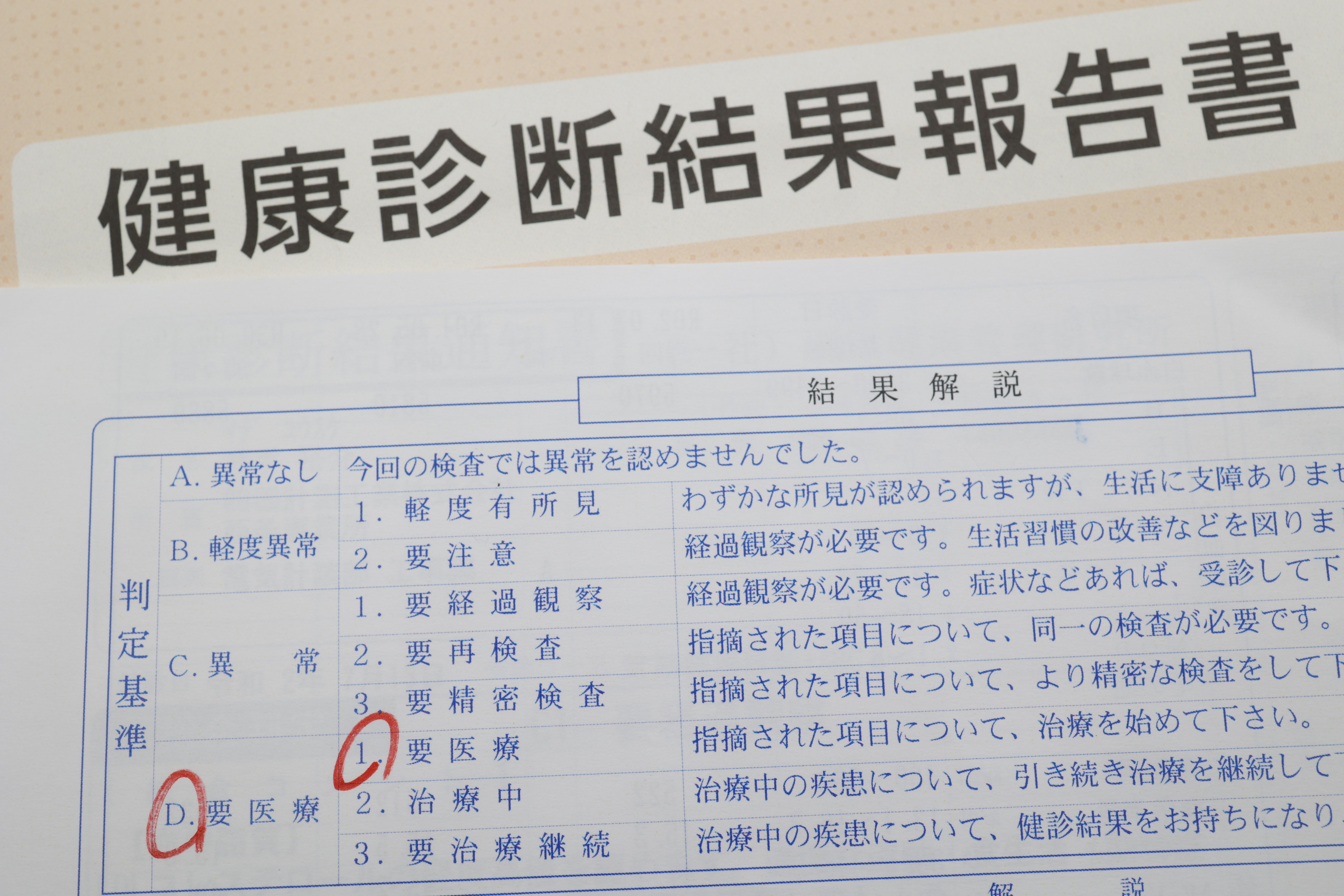 「要治療」や「要経過観察」の評価