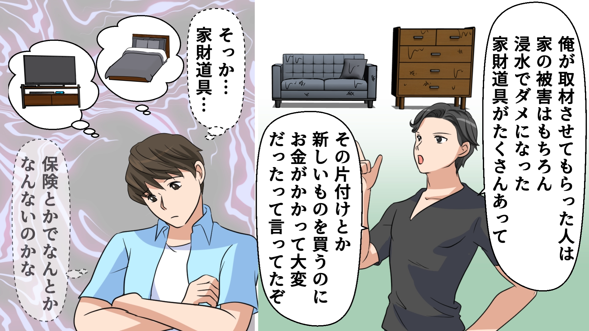 洪水に遭うと家財道具の買い替えなどにお金がかかります。